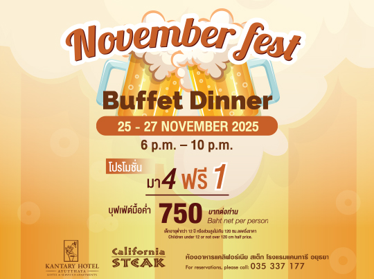 Kantary Hotel, Ayutthaya has the perfect solution: An international Buffet Dinner.
